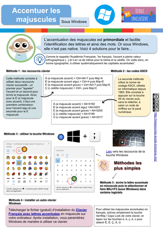 Il convient d’accentuer les majuscules pour faciliter l’identification des lettres et donc des mots. Voici un poster qui explique comment faire : Télécharger l’infographie au format Pdf