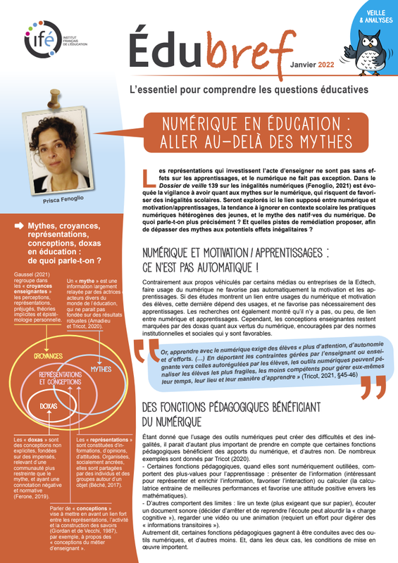André Tricot, professeur en psychologie cognitive à l'Université de Montpellier (laboratoire Epsylon – Dynamique des Capacités Humaines et des Conduites de Santé), le mardi 23 mars à 18h00, sur “Le numérique permet-il d’innover en pédagogie ? », dans le cadre d'un cycle de webconférences co-organisées avec la DFIE de Lyon.